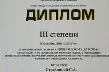 Очередной диплом 3 степени по ПДД! Поздравляем Стройкину Светлану Александровну!