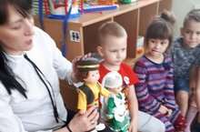 В гости приходил папа Мифтахова Керима, провёл беседу с детьми и рассказал о своей профессии "Кинолог". Но пришёл он не один, а со своей обученной собакой. ( у собаки есть медицинский паспорт)