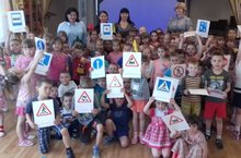 В начале встречи сотрудники провели профилактическую беседу по безопасному поведению на дороге, рассмотрели с ребятами самые трудные ситуации - так называемые «дорожные ловушки», которые могут возникнуть у юного пешехода, разъяснили как и где следует правильно кататься на велосипеде, самокате и роликах, как правильно переходить дорогу и какие опасности предостерегают их на проезжей части, во дворовой территории, а так же напомнили детям о важности и необходимости использования детских удерживающих устройств в автомобиле.