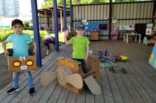 29 мая в детском саду был проведен-смотр-конкурс по подготовке прогулочных участков к летне-оздоровительному сезону. Подготовка осуществлялась в рамках проекта «Чудо коробки». Педагоги вместе с родителями изготовили из коробок для детских игр модули: бытовую технику (холодильник, микроволновку, газовую плиту, стиральную машину), гаджеты (ноутбук, сотовые телефоны), транспорт (машины, самолеты). Результаты конкурса