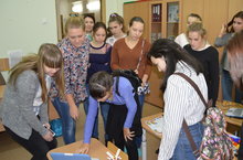 С 3 по 5 октября детский сад принимал учащихся 9-х классов, планирующих поступать в будущем году в Нижнекамский педагогически колледж. Школьницы познакомились с оснащением групп, кабинетов и залов современного детского сада, увидели работу педагогов с детьми во второй половине дня.