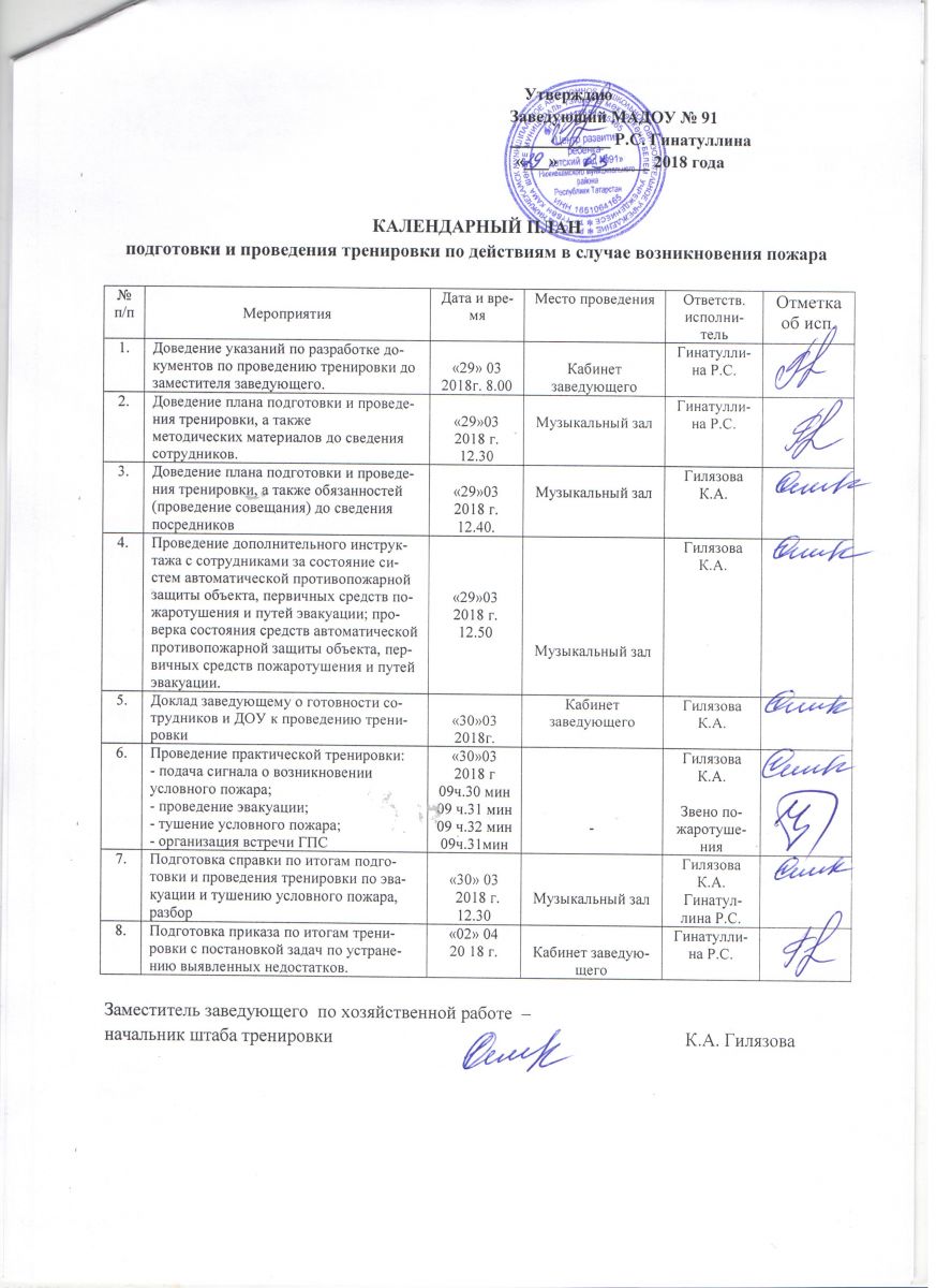 Проведение практической тренировки по эвакуации воспитанников из помещений МАДОУ №91 и тушению условного пожара
