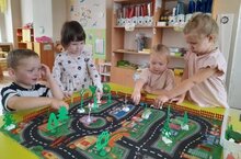 В завершении дня дети играли в игру «Безопасный город», где нужно двигаться в соответствии с правилами дорожного движения и т.д.