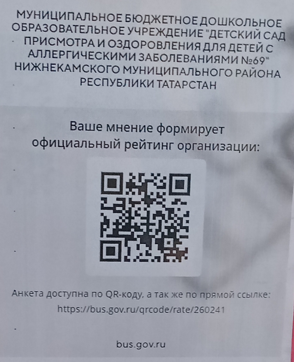 Короткое название: МБДОУ "Детский сад присмотра и оздоровления для детей с аллергическими заболеваниями №69" НМР РТ