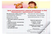 Осуществляет набор детей 5-7 лет на развивающие занятия по подготовке к школе.