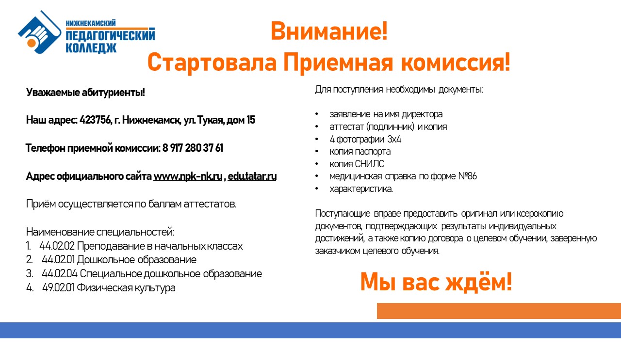 | Короткое название: | ГАПОУ "Нижнекамский педагогический колледж имени Н.Ш. Ахметшина" / ДАhБУ «Н.Ш. Әхмәтшин исемендәге Түбән Кама педагогия көллияте» |