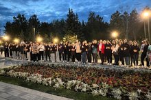 В 4 утра у Монумента Победы состоялся памятный митинг. Представители поисковых отрядов, волонтёры, а также студенты Нижнекамского педагогического колледжа возложили цветы к Вечному огню.
