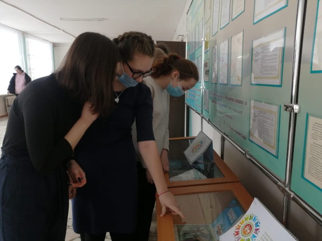 В рамках декады родного языка прошла выставка книг в фойе первого этажа. Учащиеся познакомились с книгами русских и татарских писателей.