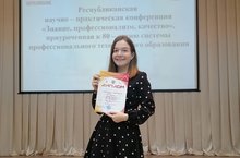 Поздравляем Буранкову Ирину и ее руководителя Сибгатову Венеру Данифовну с победой в номинации “Креативное выступление” на Республиканской научно-практической конференции “Знание, профессионализм, качество”, приуроченной к 80-летию системы профессионального технического образования.