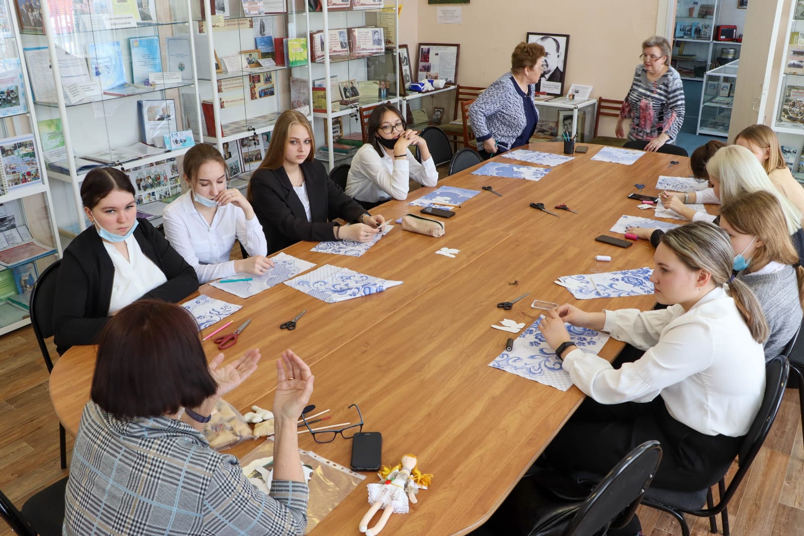 В завершении встречи Диляра Наилевна и руководители студенческого кружка «Мастерицы» Волкова Мария и Мухарлямова Зарина, студентки второго курса Нижнекамского педагогического колледжа, обменялись контактами и договорились о будущих встречах и совместных проектах.