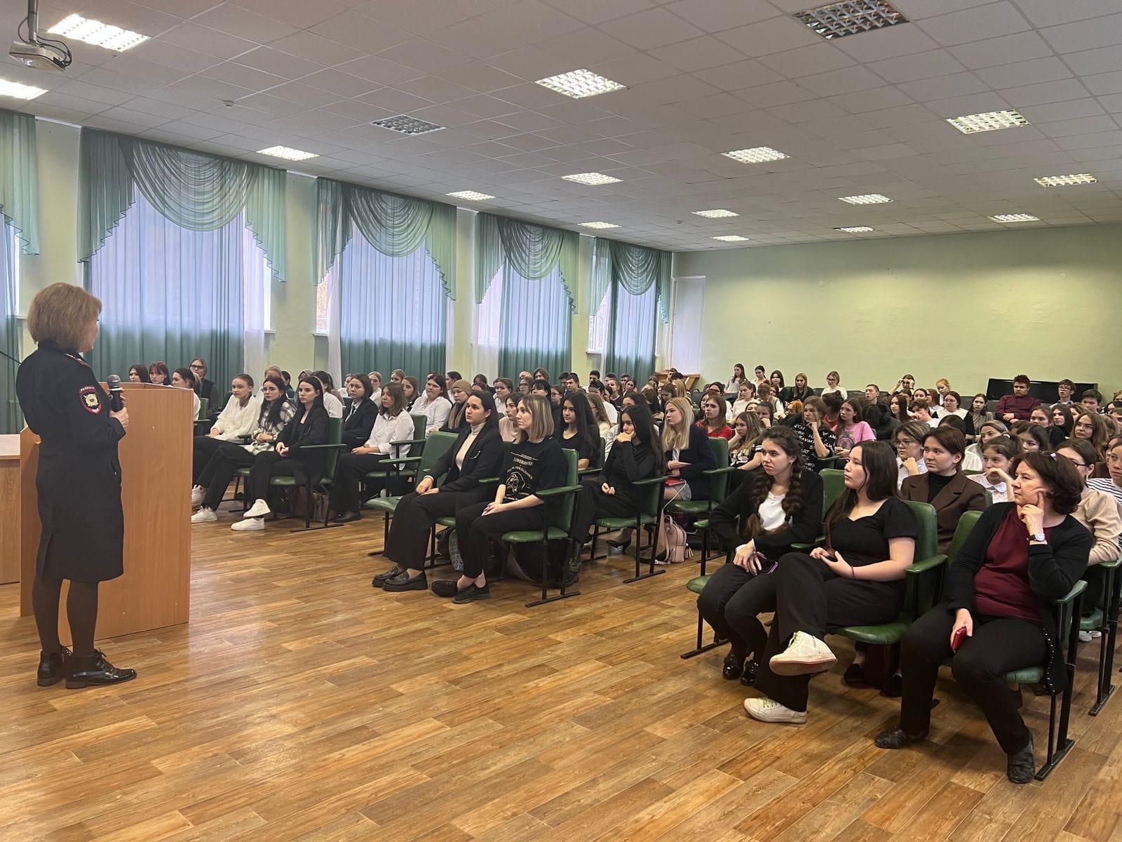 Опубликовано: 25.10.2022С целью профилактики правонарушений и преступлений среди несовершеннолетних в Нижнекамском педагогическом колледже проведена профилактическая беседа со студентами 1-2 курса. Провела беседу инспектор ПДН, майор полиции Ахметшина Р.Г.