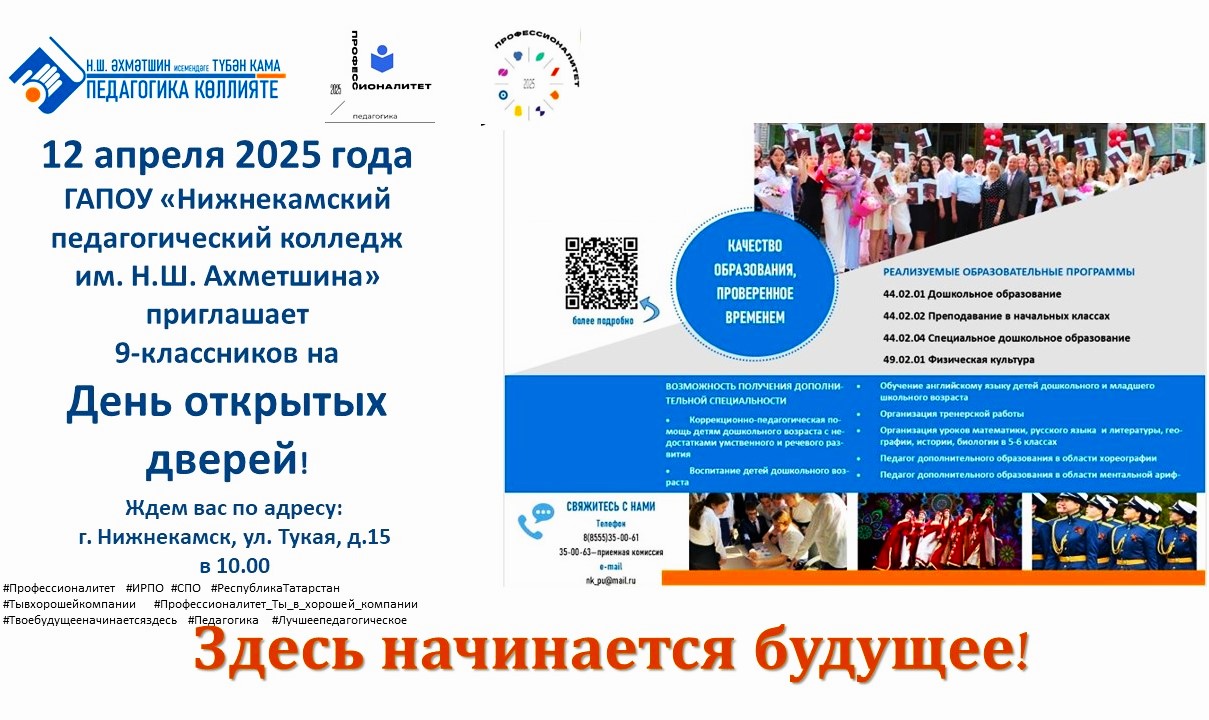 Государственное автономное профессиональное образовательное учреждение "Нижнекамский педагогический колледж имени Н.Ш. Ахметшина"/ Дәүләт автоном һөнәри белем учреждениесе «Н.Ш. Әхмәтшин исемендәге Түбән Кама педагогия көллияте»