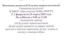 Родителям будущих первоклассников. 13.01.2025