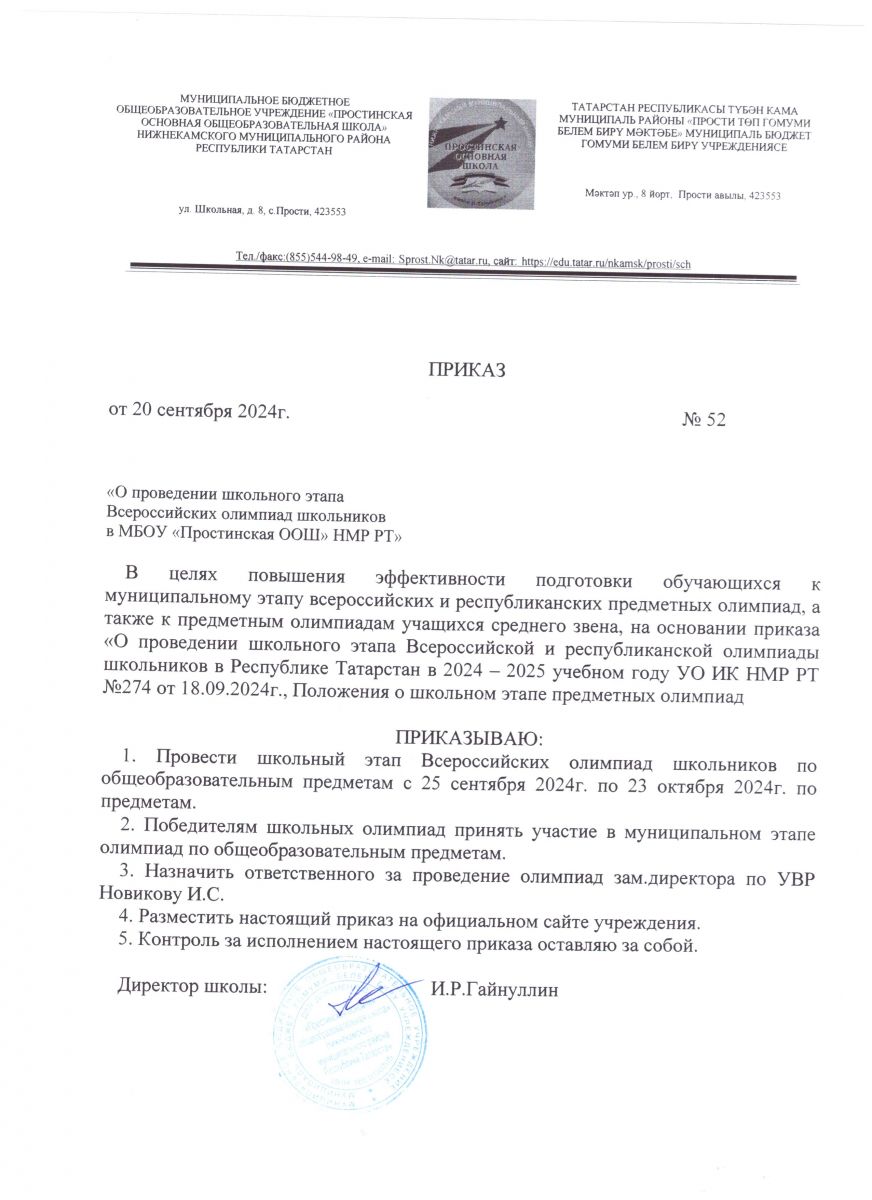 Муниципальное бюджетное общеобразовательное учреждение «Простинская основная общеобразовательная школа» Нижнекамского муниципального района Республики Татарстан