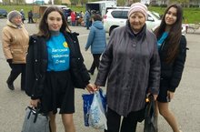 Активисты Детской районной Думы провели акцию "Частичка теплоты". Ребята помогали людям почтенного возраста донести покупки до дома и поздравляли с праздником.