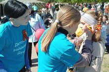 На торжественном митинге, посвящённому празднованию 78-ей годовщине Победы в Великой Отечественной войне, активистами ДРД среди тружеников тыла и детей войны была проведена акция "Георгиевская ленточка"