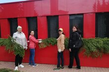 Педагоги Центра детского творчества "Радуга" к Великому празднику украсили Стену Памяти у Монумента Победы еловой "лентой".