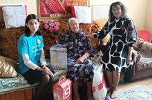Директор Центра детского творчества "Радуга", депутат Совета местного самоуправления Камских Полян Батталова Гульназ Расюловна и активисты Детской районной Думы вместе с куратором Сайфутдиновой Светланой Юрьевной вручили подарки двум труженницам тыла - жительницам дома 2/32А Ярцевой Анне Яковлевне и Семякиной Марии Алексеевне.