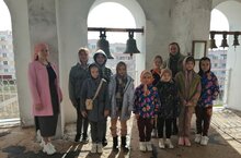 Воспитанники объединения "Чудесница" вместе со своим руководителем Натальей Александровной Мироновой впервые поднялись на звонницу Храма святых бессребреников Космы и Дамиана и попробовали позвонить в колокола.