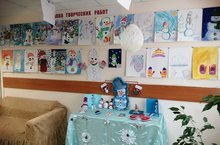 Выставка рисунков и поделок участников конкурса «Новогоднее творчество» украсила фойе Центра детского творчества «Радуга». А на рисунках, среди поделок улыбающиеся снеговики и раскрасивые рукавички Деда Мороза.