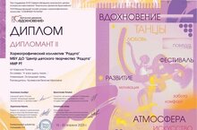 Хореографический коллектив педагогов Центра детского творчества "Радуга" под руководством Краевской Евгении Ивановны стал Дипломантом 2 степени XVIII Международного онлайн-конкурса хореографического искусства "Собираем таланты". На конкурс была представлена танцевальная композиция "А зори здесь тихие", вошедшая в сценарий творческой постановки "Женское дело - война?". Напомним, коллектив "Радуги", принявший участие с данной постановкой в смотре-конкурсе художественной самодеятельности "Вернуться памятью и сердцем!" среди работников и коллективов предприятий, организаций и учреждений Камских Полян, посвящённом 80-летию Победы в ВОВ, стал обладателем высшей награды - Гран-При.