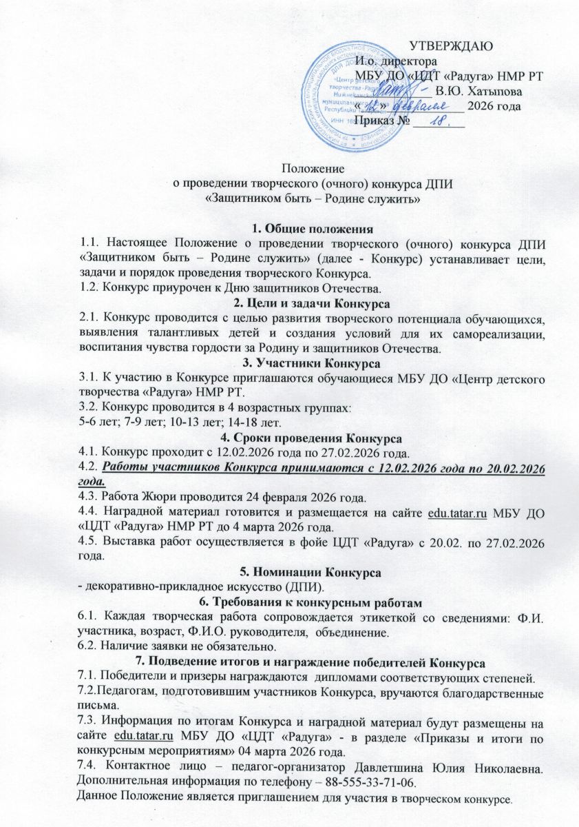 Положение о проведении творческого (очного) конкурса ДПИ "Защитником быть - Родине служить"