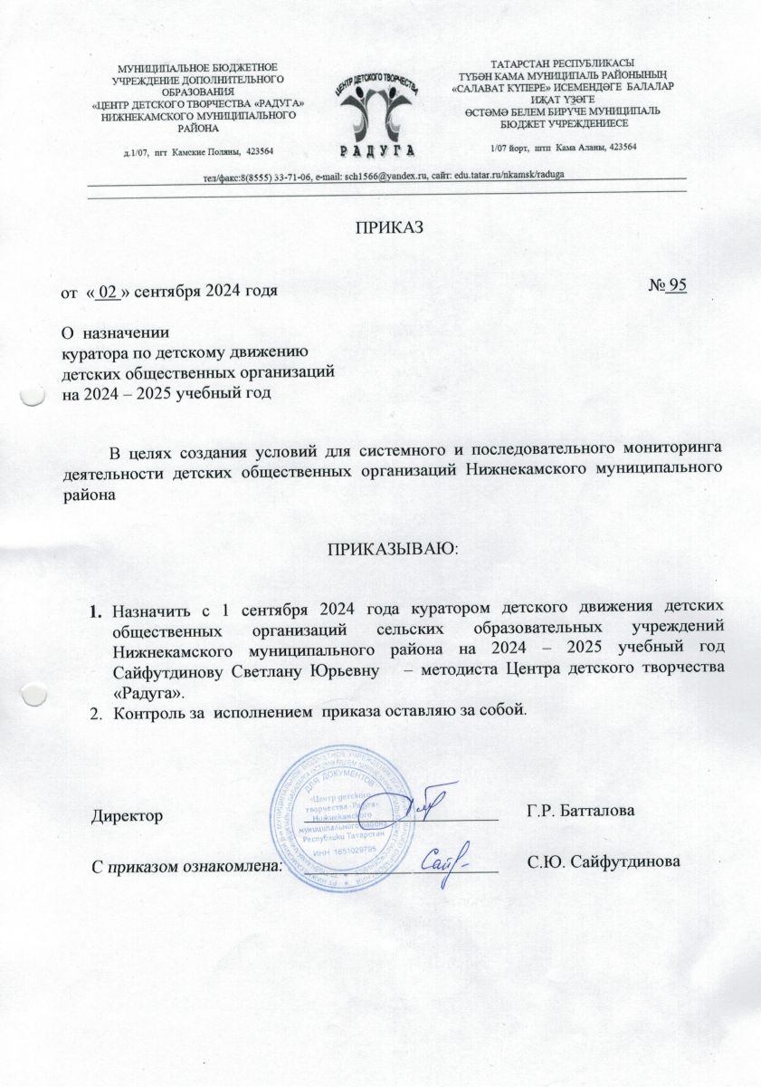 О назнечении куратора по детскому движению на 2024-2025 учебный год