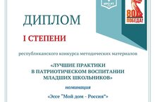 С 24.12.2924 г. по 12.02.2025 г. ГАПОУ "Институт развития образования Республики Татарстан" проводился республиканский конкурс методических материалов "Лучшие практики в патриотическом воспитании младших школьников", где приняли участие методисты и педагоги муниципальных образований республики. По итогам конкурса нижнекамские методисты: Мухамадиева А. Г. и Нуруллина Г. Г. стали победителями в номинации "Эссе "Мой дом - Россия".