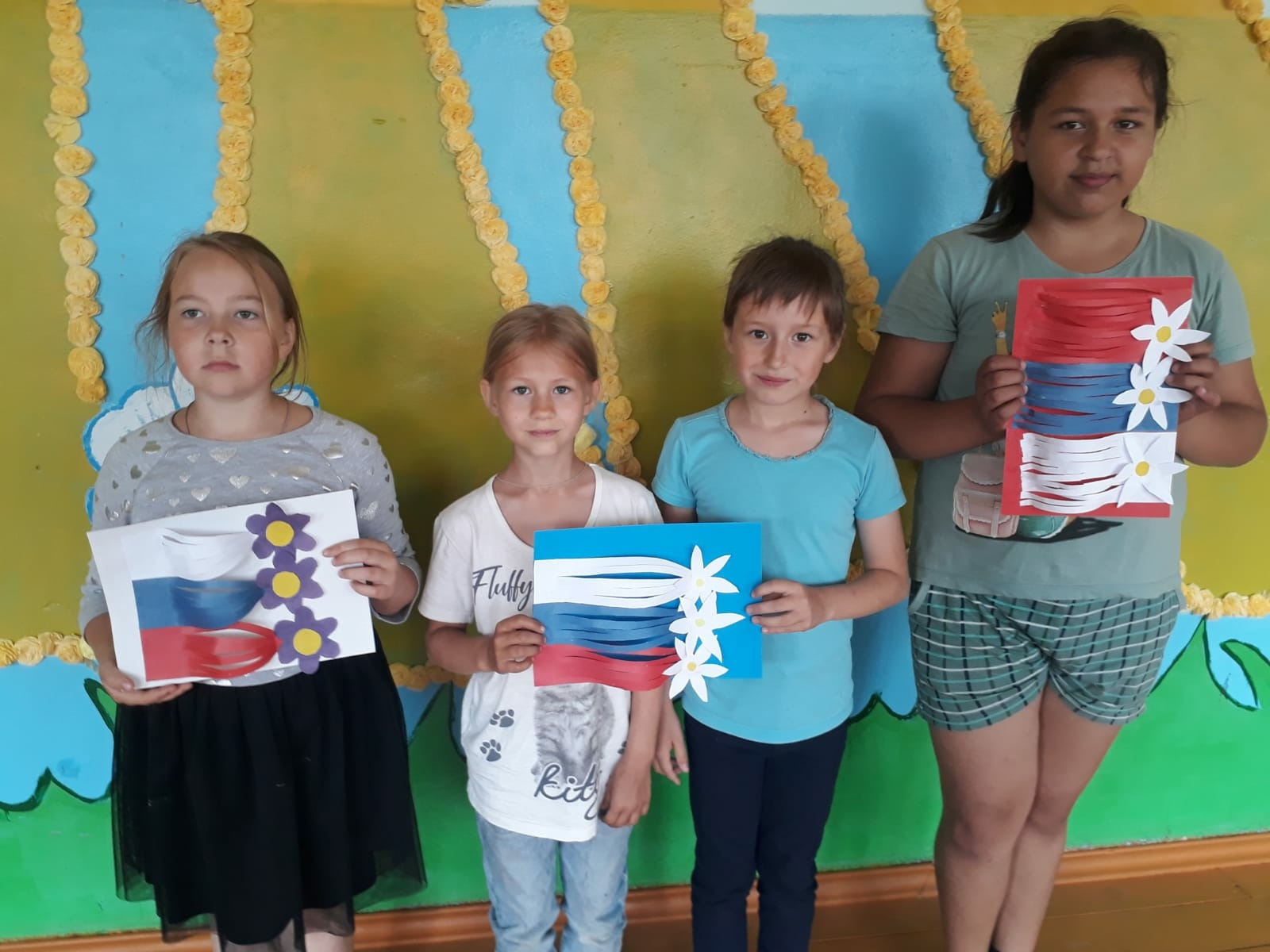 Ко Дню России воспитанники пришкольного лагеря "Солнышко" изготовили праздничные открытки и провели конкурс на лучшую открытку отрядов.