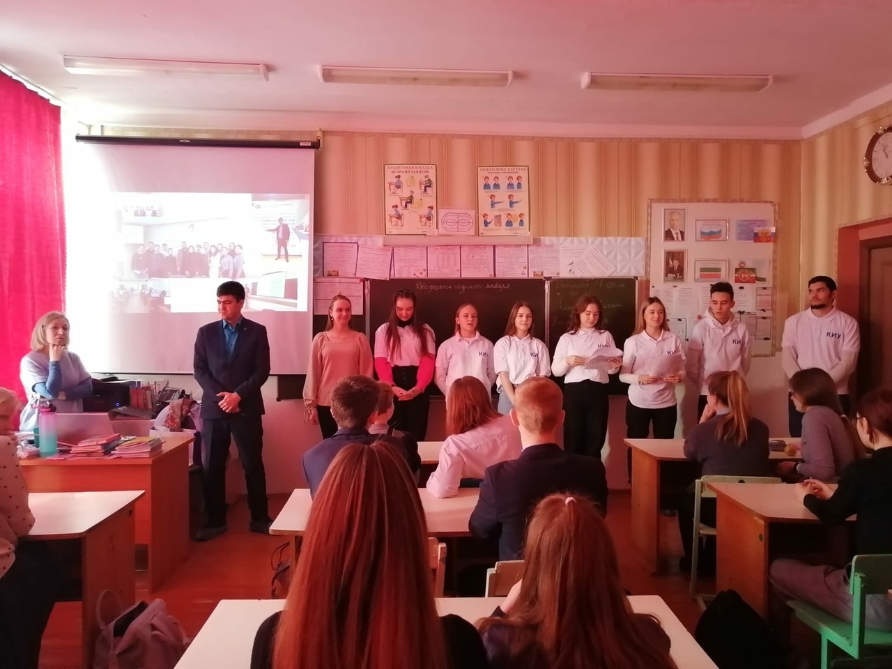 В рамках Единого урока профориентации состоялась встреча студентов и преподавателей КИУ им. Тимирясова города Нижнекамск с учащимися 8-11 классов, с целью профориентационной работы. Рассказали много интересного ни только о своём учебном заведении, но и о своих будущих специальностях. Студенты и педагоги провели беседу и показали мастер - класс .