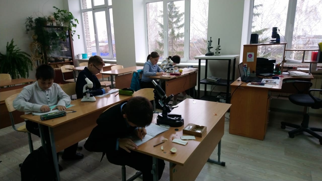 11 ноября учащиеся 5 класса на уроке биологии выполняли лабораторную работу с использованием оборудования, поступившего по программе "Точка роста'. Они готовили временные микропрепараты и рассматривали их под микроскопом...педагог Баранова Н.И.
