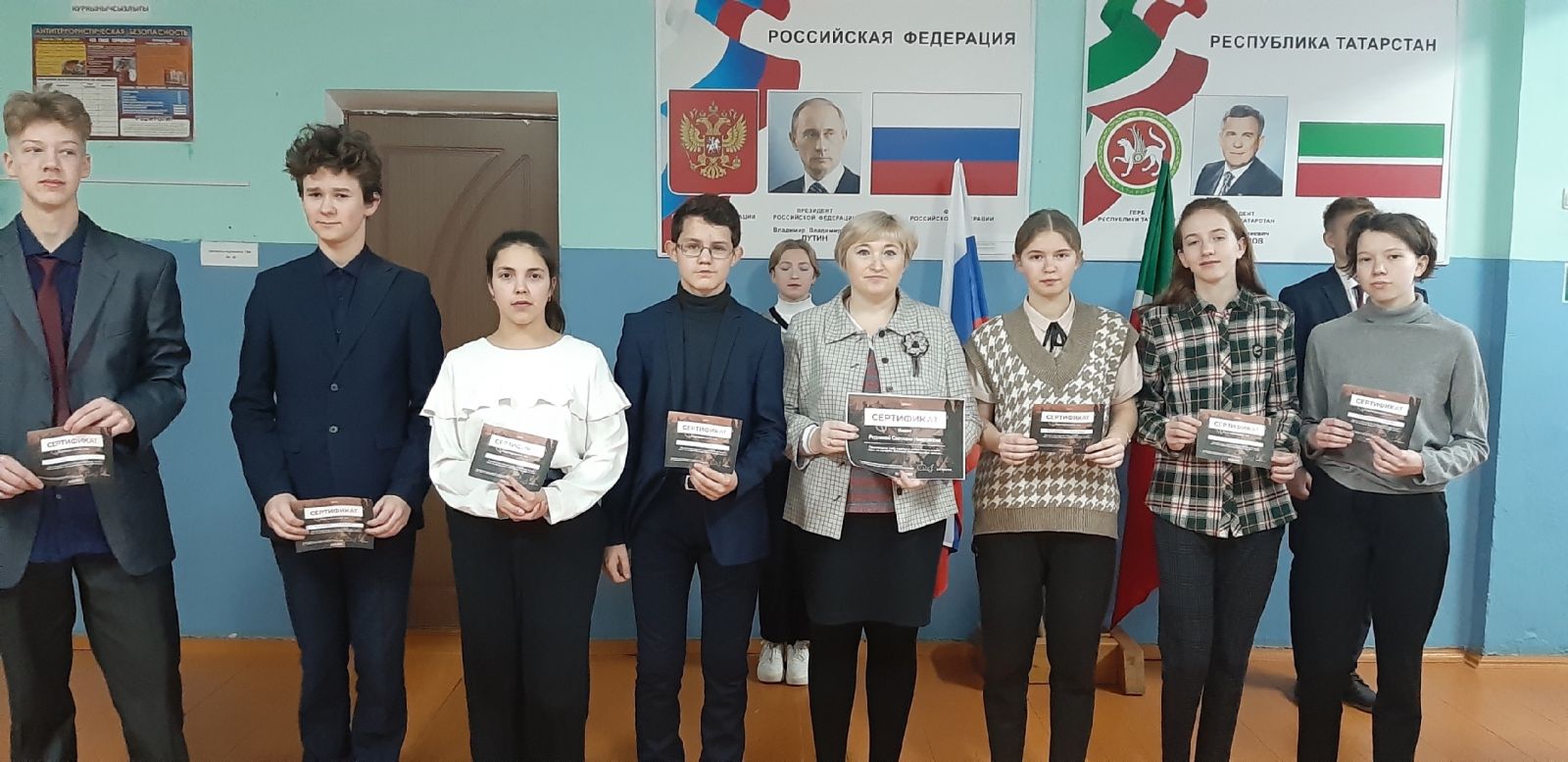 На общешкольной линейке учащимся школы вручили сертификаты участия во Всероссийском географическом диктанте 2022...педагог и организатор мероприятия Баранова Н.И.