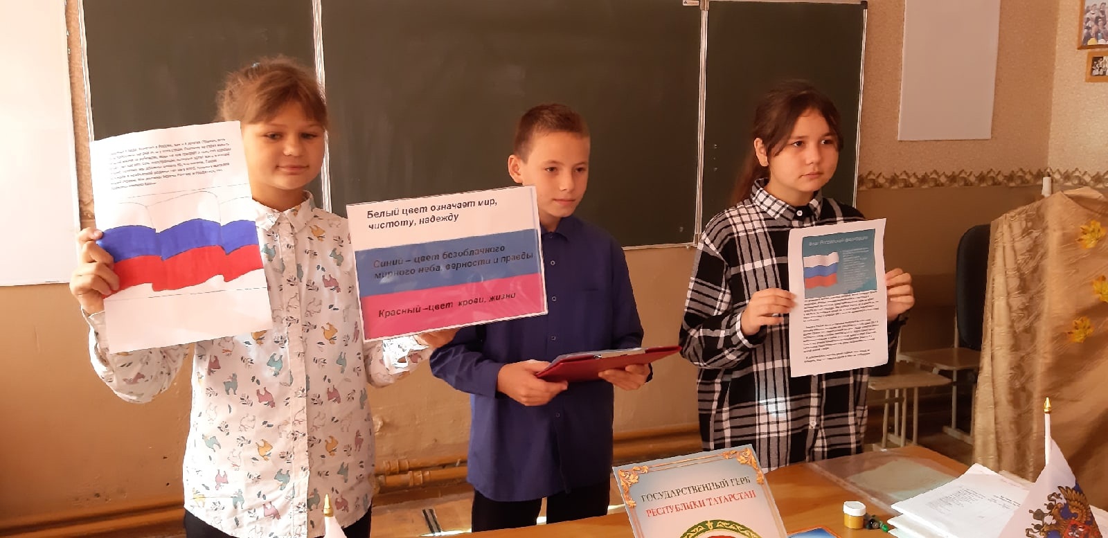 В рамках урока "Разговоры о важном" в 6 классе прошло занятие на тему "Государственные символы России и Татарстана"