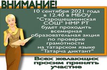 "Всемирная акция Татарча диктант". 13.09.2021