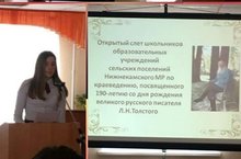 Учащиеся нашей школы стали активными участниками открытого слёта школьников образовательных учреждений сельских поселений Нижнекамкого МР по краеведению, посвящённого 190 - летию со дня рождения великого русского писателя Л.Н.Толстого. Руководитель: Шахова И.А. Молодцы!
