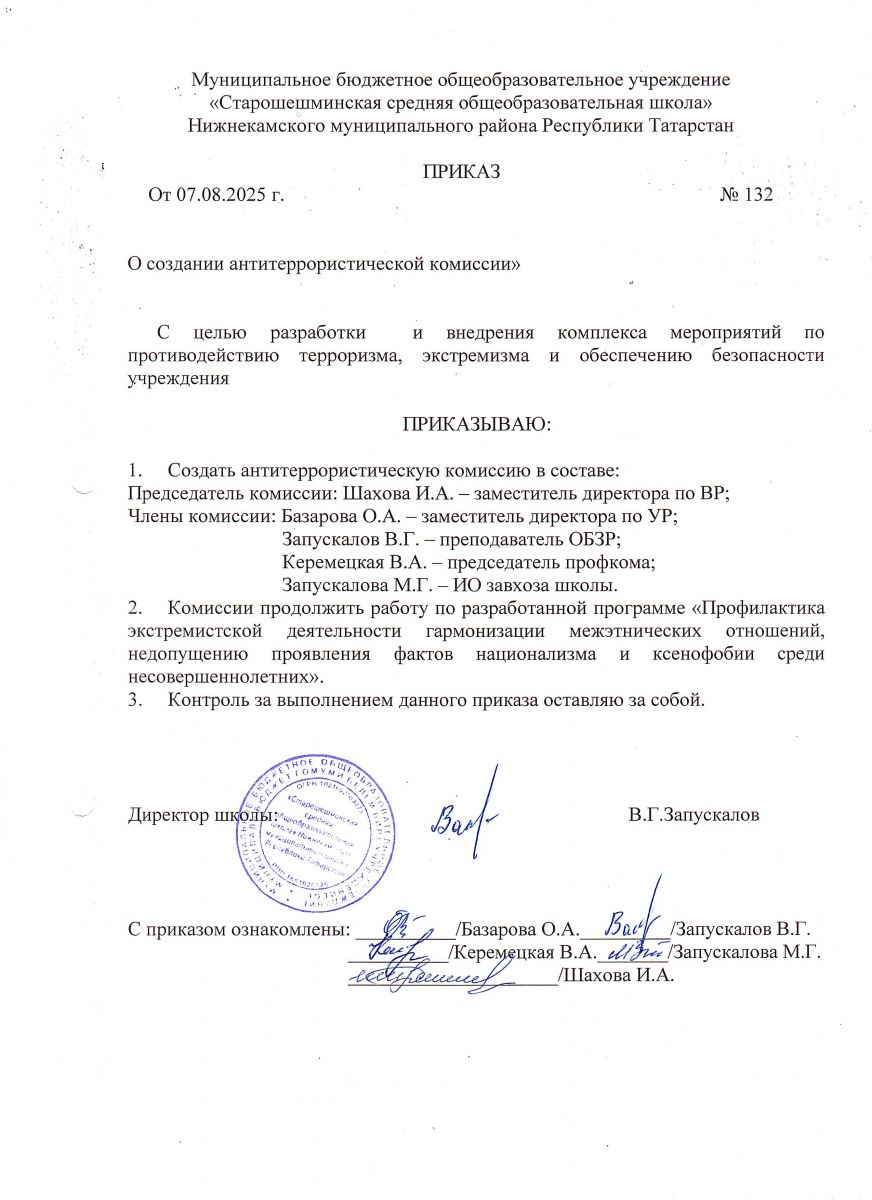 Положение об антитеррористической комиссии МБОУ Старошешминская СОШ НМР РТ