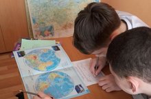 Учитель географии Тактаров Р.М. провел урок для 8-ых классов на тему "Планета и человек".