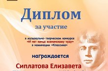 Поздравляем Сиплатову Елизавету, ученицу 6а класса, принявшую участие в конкурсе «И нет конца есенинскому чуду…»
