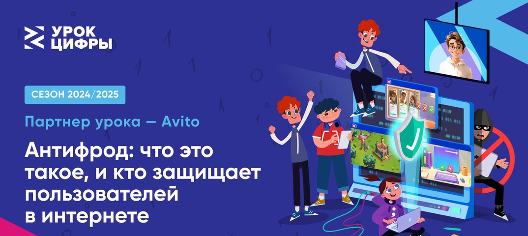 На «Уроке цифры» от Авито ты узнаешь, как работают антифрод системы, которые стоят на страже пользователей!Урок адресован обучающимся 1 –11-х классов и направлен на развитие ключевых компетенций цифровой экономики у школьников, а также их раннюю профориентацию в сфере информационных технологий. В рамках Урока обучающиеся познакомятся с принципами работы антифрод-систем, научатся распознавать подозрительные действия и защищать свои данные. Кроме того, сформируют понимание механизмов противодействия мошенничеству (фроду) в интернете, а также познакомятся с профессиями, связанными с защитой данных.Организаторами Урока выступают Министерство цифрового развития, связи и массовых коммуникаций Российской Федерации, Министерство просвещения Российской Федерации, АНО «Цифровая экономика» в партнерстве с ключевыми российскими организациями сферы информационных технологий.