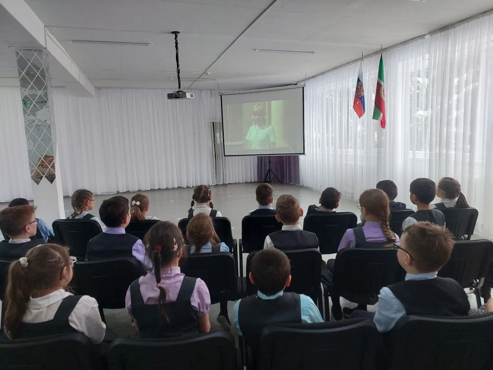 После беседы школьники посмотрели фильм "Назначаешься внучкой"и ознакомились с информацией на стенде, посвящённой юным героям.