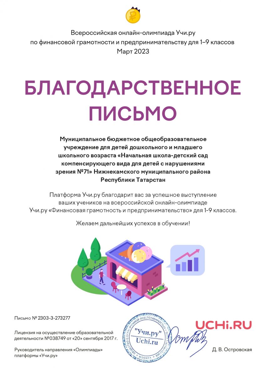 Муниципальное бюджетное общеобразовательное учреждение для детей дошкольного и младшего школьного возраста «Начальная школа-детский сад компенсирующего вида для детей с нарушениями зрения №71» Нижнекамского муниципального района Республики Татарстан - новости