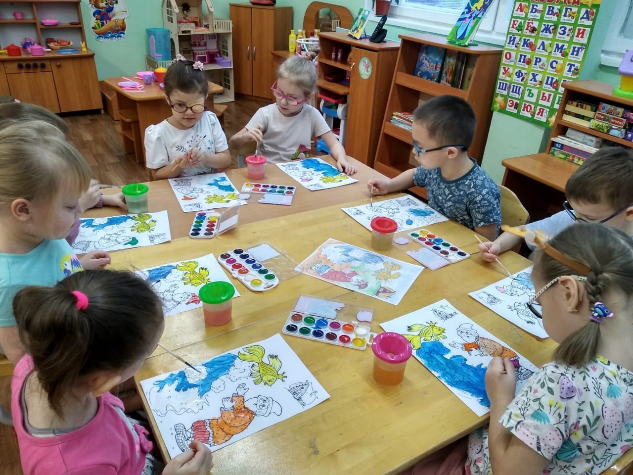 Сказки близки и дороги, как взрослым, так и детям. Они не похожи одна на другую. Каждая из них по-своему любима не одним поколением. В сказках – фантастические события, неожиданные повороты и чудесные превращения. Воспитатели в доступной форме рассказала о жизни и творчестве поэта, провела дидактические игры «Продолжи цепочку слов», «Третий лишний», «Узнай сказку по словам», «Доскажи словечко». Дети рисовали , делали аппликации по мотивам сказок. Итогом стала выставка посвящённая А.С.Пушкину