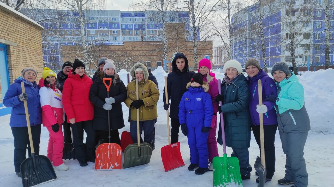 С хорошим задором, дружно все вместе убирали снег, расчищали детские площадки и дорожки, не забывая, при этом, весело шутить и подбадривать друг друга.