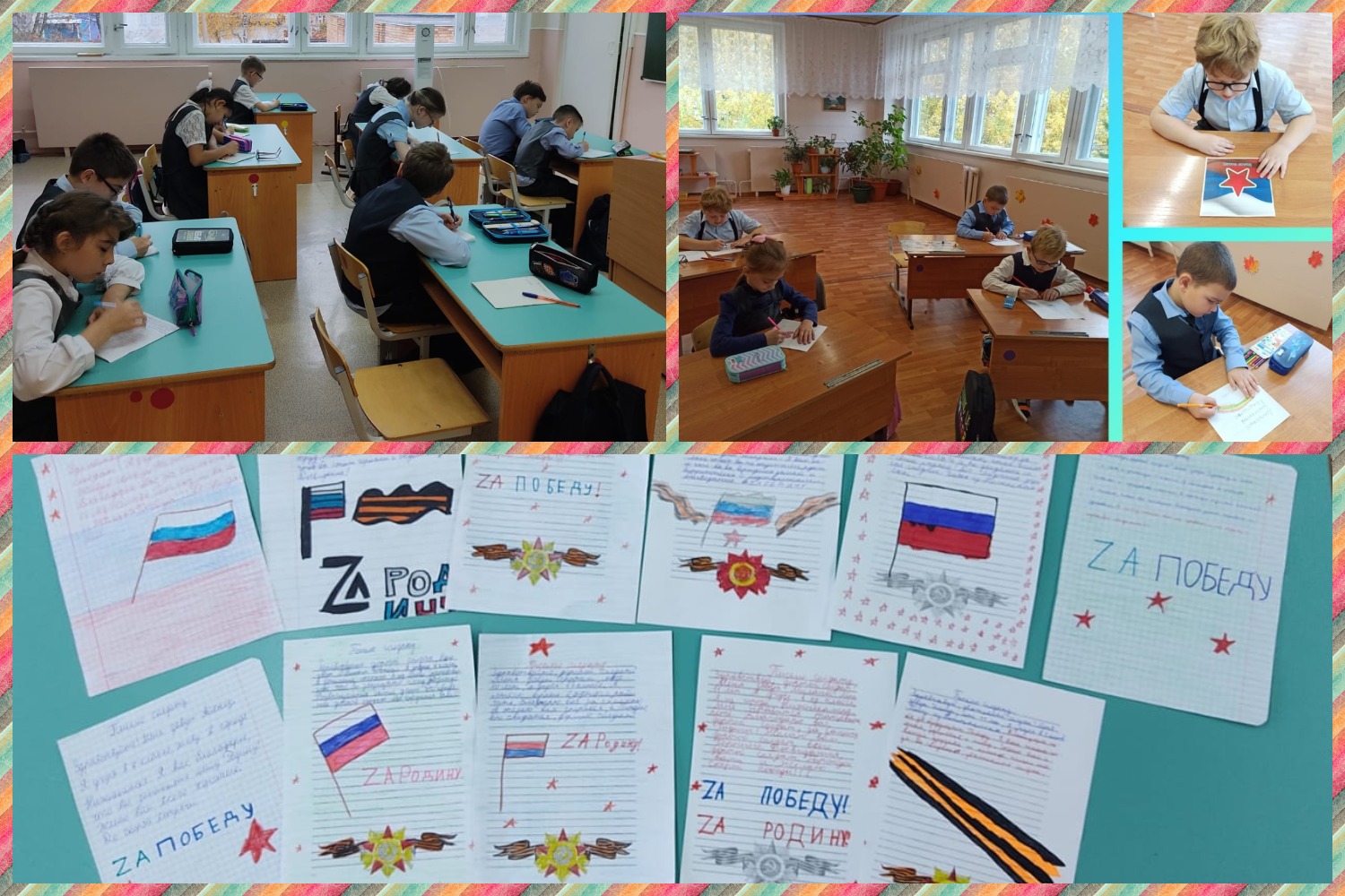 Министерство обороны Российской Федерации совместно с Министерством народного просвещения России объявили о проведении 17 октября 2022 года Всероссийской акции «Письмо солдату». Акция проводится одновременно во всех регионах России в рамках «Уроков Мужества» с участием школьников, студентов колледжей, юнармейцев, воспитанников военно-патриотических клубов.К акции активно присоединились все воспитанники и обучающиеся МБОУ "НШДС №71" НМР РТ.В рамках акции дети написали письма участникам специальной военной операции, а также мобилизованным, проходящим подготовку и боевое слаживание, в которых выразили свою признательность и слова благодарности, поддержки и пожелания нашим солдатам. Во всех письмах говорилось о том, чтобы все воины российской армии поскорее вернулись домой живыми и чтобы наступил долгожданный мир и больше никогда и нигде люди не слышали разрывов снарядов и свиста пуль. -
