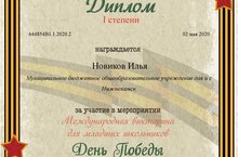 Учащиеся 1 класса стали победителями Международной викторины для младших школьников "День Победы"