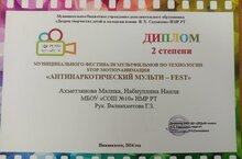 Участники антинаркотического отряда "СМС дети" Ахметзянова Малика и Набиуллина Наиля из 7а класса под руководством социального педагога Валиахметовой Г.З. заняли 2 место в муниципальном фестивале мультфильмов по технологии STOP- MOTIONАНИМАЦИЯ "АНТИНАРКОТИЧЕСКИЙ МУЛЬТИ-FEST"