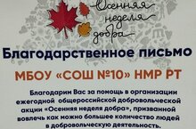 Сегодня состоялось награждение организаций, принявших участие в акции «Осенняя неделя добра», где наша школа была отмечена благодарственным письмом Нижнекамского волонтерского центра.