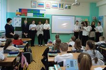В рамках проведения недели астрономии 20 апреля учащимися 7б класса было проведено мероприятие «Космическое путешествие» для учащихся 3б класса. На этом мероприятии ребята ознакомились с вопросами возникновения Вселенной, строения Солнца и звезд. Ребята семиклассники рассказали о первооткрывателях космоса. Третьеклашки задавали вопросы, интересовались из чего состоят звезды, как движется Солнце, но многие вопросы им были известны, что-то они читали, что-то видели в различных фильмах, поэтому многие вопросы они дополняли своими рассказами. После ознакомления с вопросами космоса, была проведена небольшая викторина. Мероприятие ребятам очень понравилось.