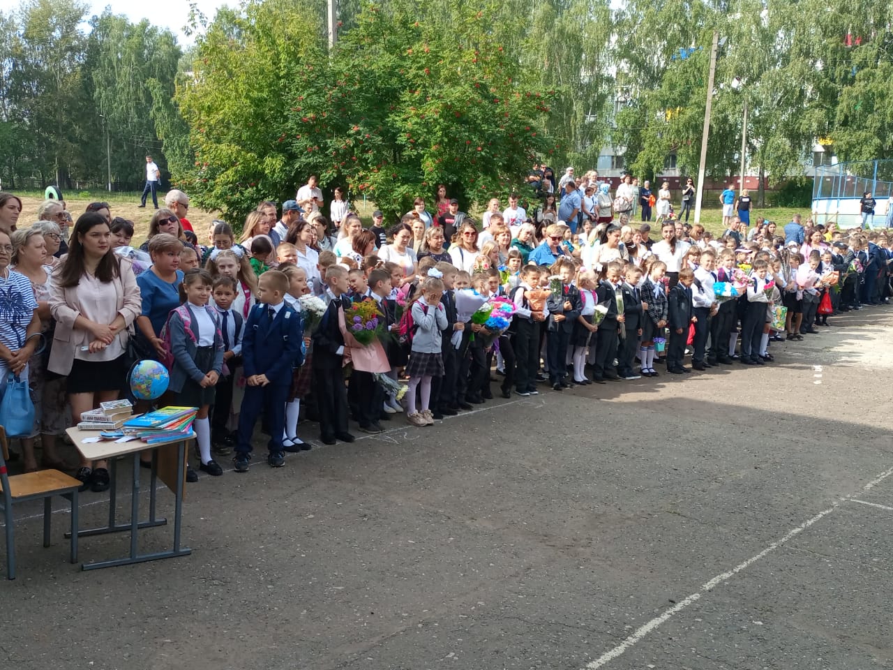 1 сентября в нашем школьном дворе состоялась традиционная торжественная линейка ,посвященная началу учебного года. В этот день распахнули двери в страну знаний более 430 учащихся, прозвенел первый звонок для 30 первоклашек. Этот учебный год начался с поднятия Государственных флагов и исполнения гимна.