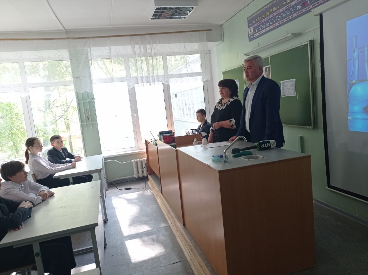 Сегодня в школе прошли классные часы, посвящённые Дню химиков. Один из уроков посетил выпускник нашей школы - генеральный директор ПАО "Нижнекамскнефтехим" Сафин Айрат Фоатович.